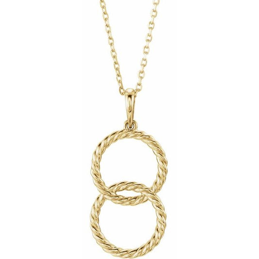 Interlocking Rope Circle Necklace in 14K Gold 16"-18"