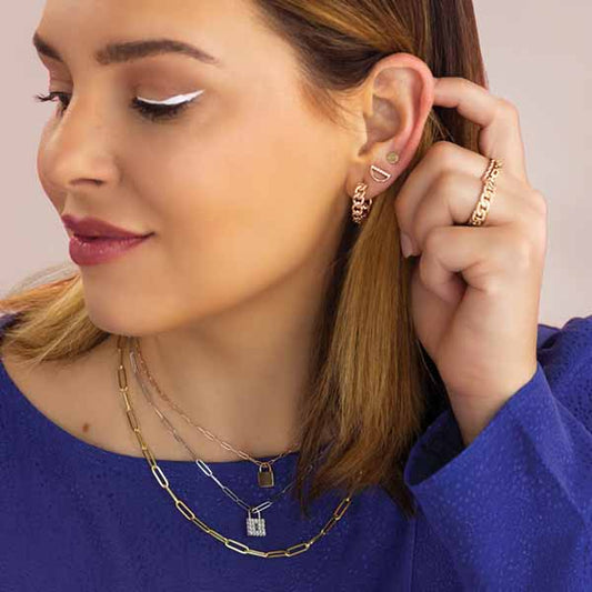 14K Solid Gold "Paper-clip" / Flat Link Chain Necklace
